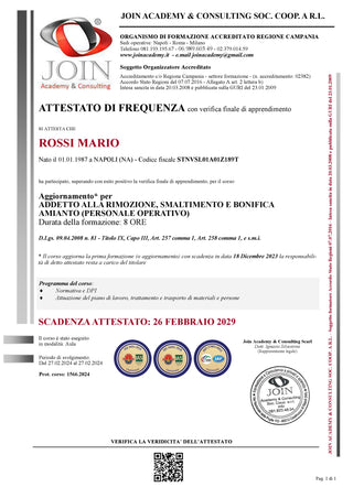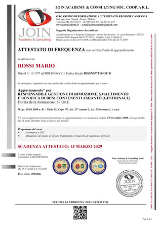 RRA Asbestos Risk Manager pursuant to Ministerial Decree 06.09.1994